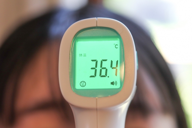 最近ではコロナウイルス拡大を受け、多くの店舗が接触なしで検温できる非接触式を採用しております。